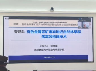 2026年1月13日上午,“十四五”国家重点研发计划“困难立地植被高效修复关键技术”课题五“有色金属采矿废弃地障碍因子持续削减与近自然植被构建技术”于湖南省长沙市中南林业科技大学召开2025年度工作进展汇报会,系统总结本年度研究成果,并部署下阶段重点任务。