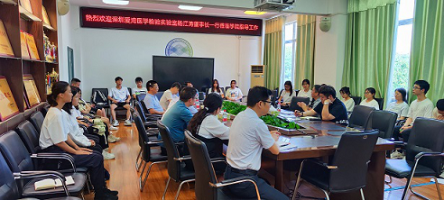 项文化向来宾介绍了学院的办学历史、办学成就,希望校企双方在长期友好合作的基础上,继续深化互访交流、人才科研合作。李红军对杨江涛先生一行来访表示热烈欢迎,对深圳爱湾医学检验实验室来校设立“爱湾奖学金”致以感谢。贺一骄介绍了学院本科生的规模人数及日常管理工作情况。曾柏全介绍了学院研究生培养模式和学科专业特色。