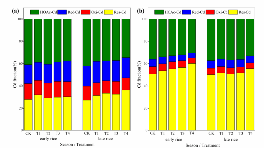 2. 不同量的秸秆离田措施,促使了土壤中Cd的赋存形态从酸可提取态和可氧化态向残渣态地转变,有利用土壤Cd的生物有效性降低(图2)。