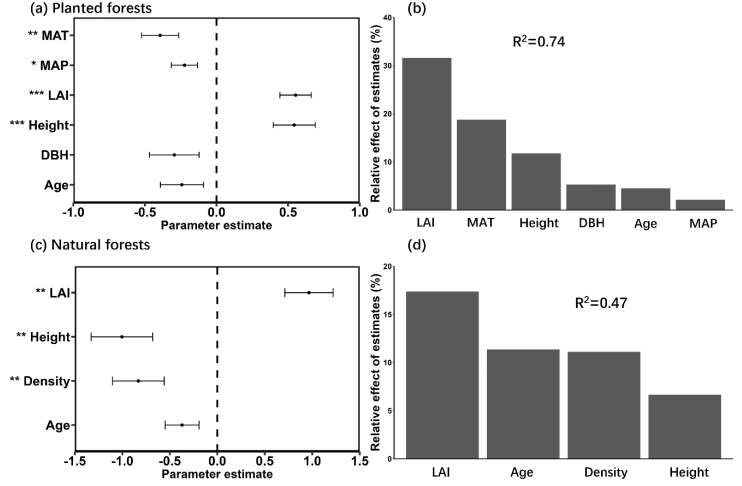 (2) 探索这些差异如何受到林分特征、树种以及生态系统结构复杂性的影响;