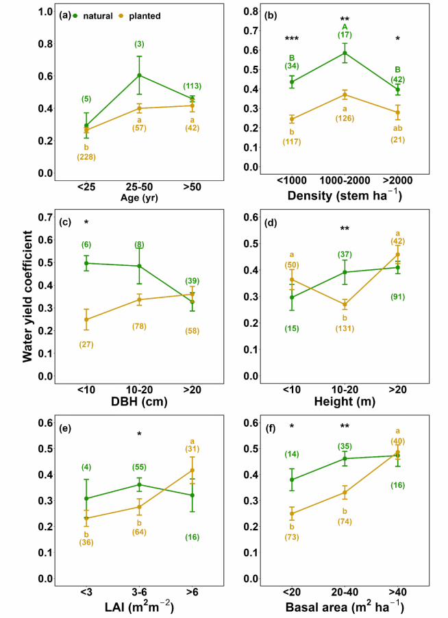 题目:Balancing water yield and water use efficiency between planted and natural forests: a global analysis