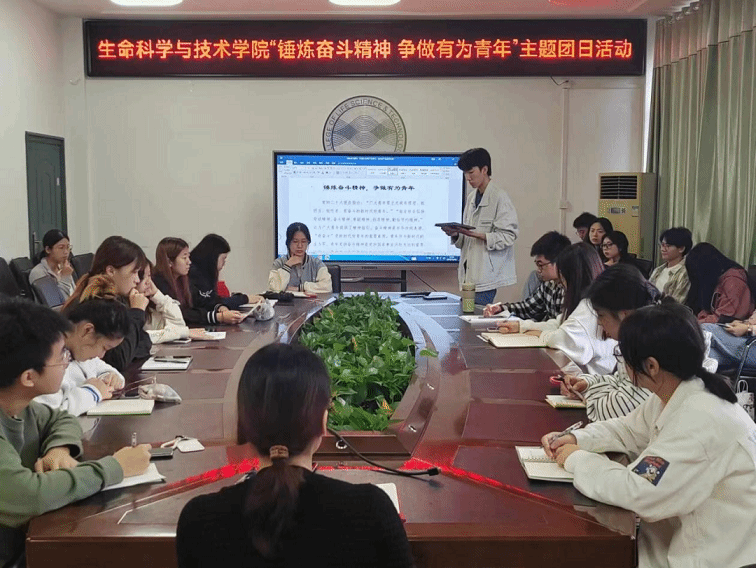 为弘扬奋斗精神,激励青年有所作为,生命科学与技术学院于10月26日12:30在树木楼四楼会议室召开2023年秋季学期主题团日学习活动。辅导员伏珂颖、生科院团委学生会主要干部参与了此次会议。会议由伏珂颖主持。