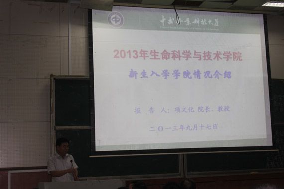 专业介绍之前,在生科楼002首先进行了学院概况介绍。大会由沈燕书记主持,项文化院长从机构设置、学科发展、科研平台等7个方面整体概括了学院的基本情况,并鼓励全体新生认真学好专业知识、积极投身社会实践、认真规划大学生活。