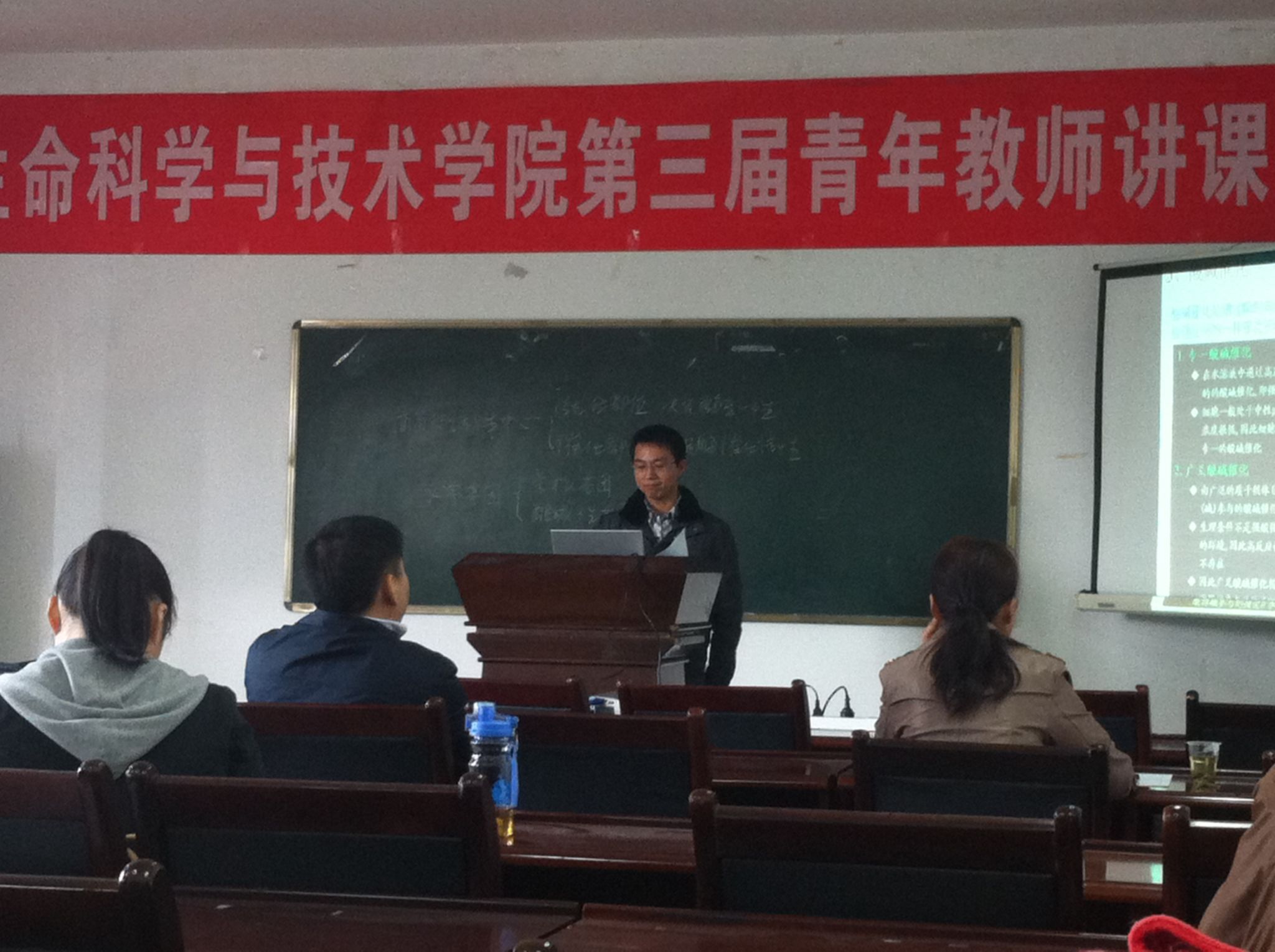 2012年3月26日下午,生命科学与技术学院青年教师骨干齐聚生命科学楼B座523会议室,“第三届青年教师讲课比赛”拉开了帷幕。来自我院的十余名教师报名参加了此项赛事。校督导刘友全老师,评建处、人事处、教务处、生科院等部门的领导同志作为评委出席了本次活动。