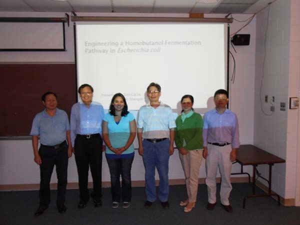 8月18日至21日在北伊利诺伊大学期间,参观了生物能源实验室,并就生物乙醇、生物丁醇科研与生产和Shengde Zhou博士的科研团队进行了广泛的学术交流,分别就各自在相关研究领域研究近况、所取得的科研成果、在研究和生产应用中遇到的瓶颈问题作了深入交流和探讨,取得了预期的效果,并就今后在人员交流、科研合作达成了广泛的共识。