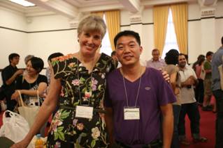 向左甫博士与国际著名灵长类学家Sarah Blaffer Hrdy博士(Professor emerita at University of California-Davis and a member of National Academy of Science)在欢迎宴会上