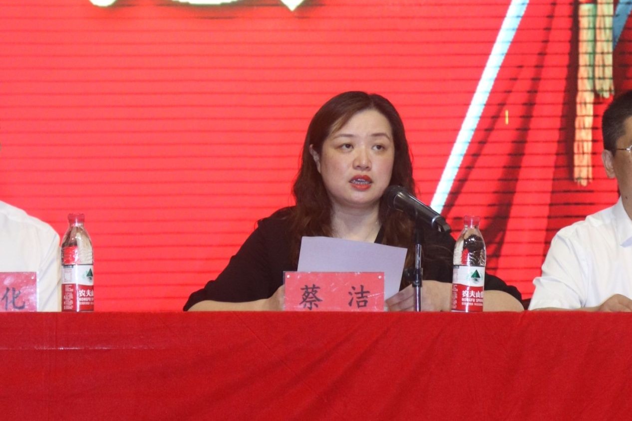 ▲校党委组织部副部长兼党校副校长蔡洁宣读党委换届选举批复