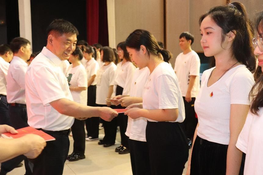 换届选举后,举行了预备党员入党宣誓仪式,33名预备党员面向党旗,在领誓人周国英副院长的带领下庄严宣誓。宣誓结束后,院班子成员向预备党员颁发了《中国共产党章程》。