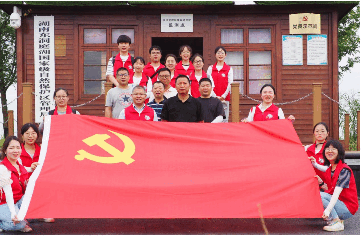 7月1日至4日,中南林业科技大学生命科学与技术学院党员博士团赴湖南省岳阳市东洞庭湖生态区开展了为期4天的暑期“三下乡”社会实践。实践团跟随习近平总书记视察洞庭湖的脚步,先后来到了林阁老巡护监测站及城陵矶水文站,调查了芦苇分布情况,并就芦苇资源的开发利用与保护区管理局相关人员进行了探讨。随后,实践团前往鱼巷子文化街及岳阳港工业遗址公园进行走访调研,了解十年禁渔政策下洞庭湖的治理情况和渔民上岸后的安置情况。此外,实践团还前往南湖公园采集木腐真菌资源,进行微生物降解研究。