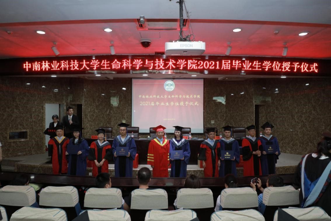 最后,张亮书记向2021届毕业生表达了美好期望,希望各位毕业生们在未来的日子里志存高远、直面挑战、脚踏实地、勇于奉献,真正把学院领导的殷切寄语和老师的谆谆教诲化作今后不断前行的动力,让“求是求新、树木树人”的校训精神融入骨髓,播撒四方,在充满希望的明天,不负韶华,书写好人生最为华美的诗篇。至此,中南林业科技大学生命科学与技术学院2021届毕业生学位授予仪式圆满结束!