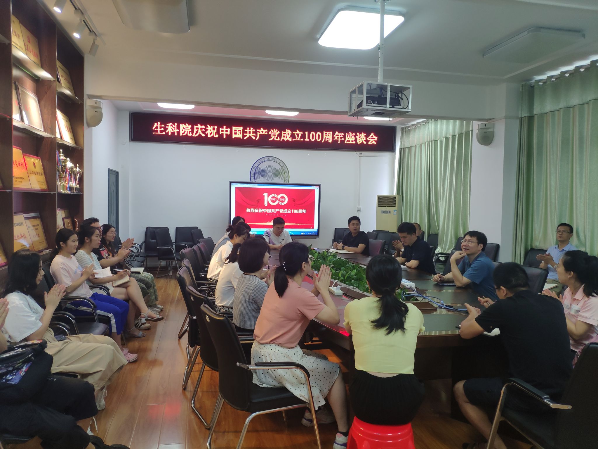 7月2日上午,我院在树木楼B座432召开庆祝建党100周年座谈会,学院党委书记张亮、副书记贺一、各支部书记、副书记,党龄为10的整数倍党员及部分学生党员代表参会。会议由段酬苍主持。