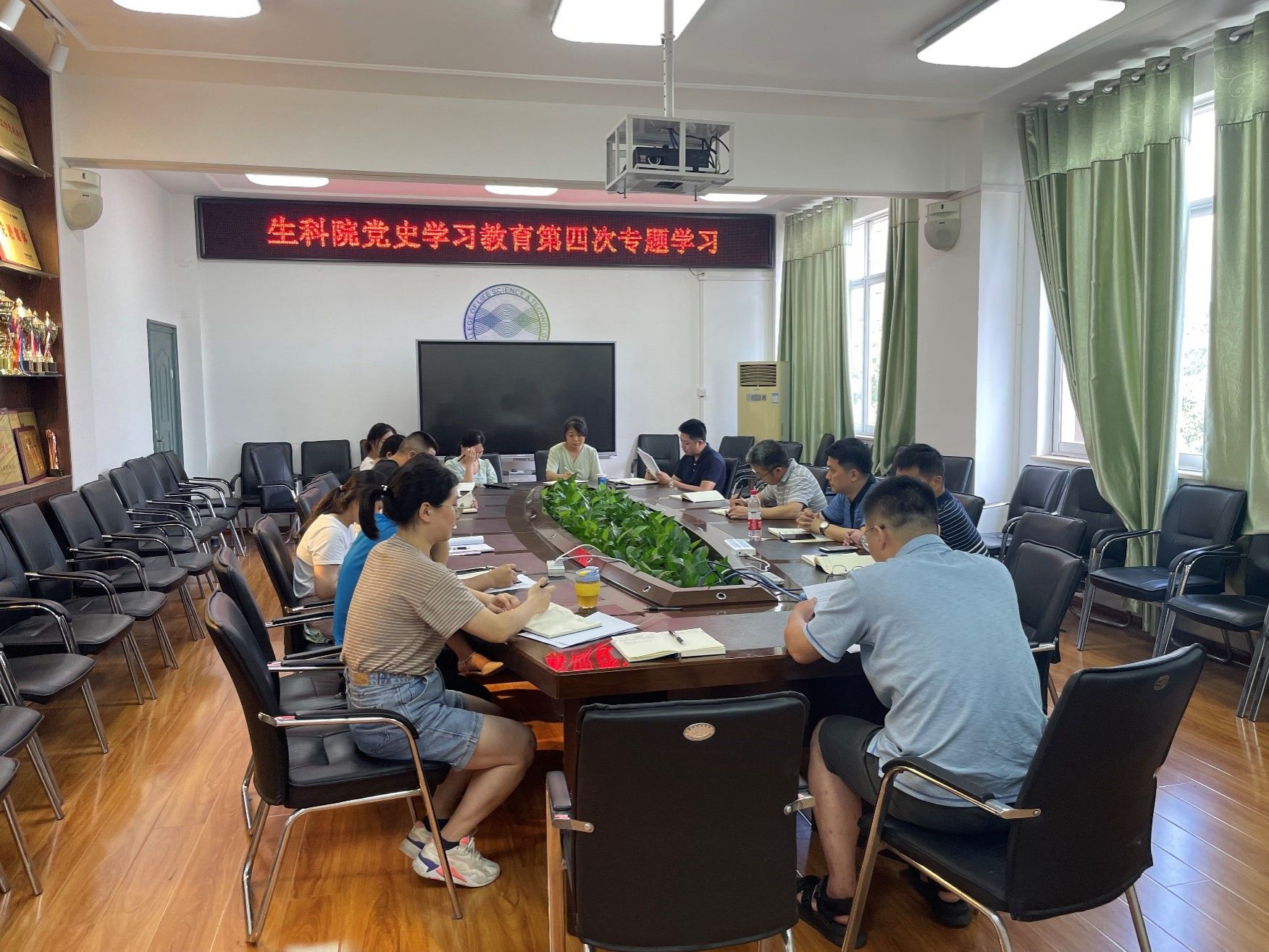7月6日下午3时,生科院党委在树木楼B座432会议室召开了中心组党史学习教育第四阶段“学史力行”专题学习会议。学院领导班子成员、行政办和各支部书记、副书记参加会议。会议由党委书记张亮主持。