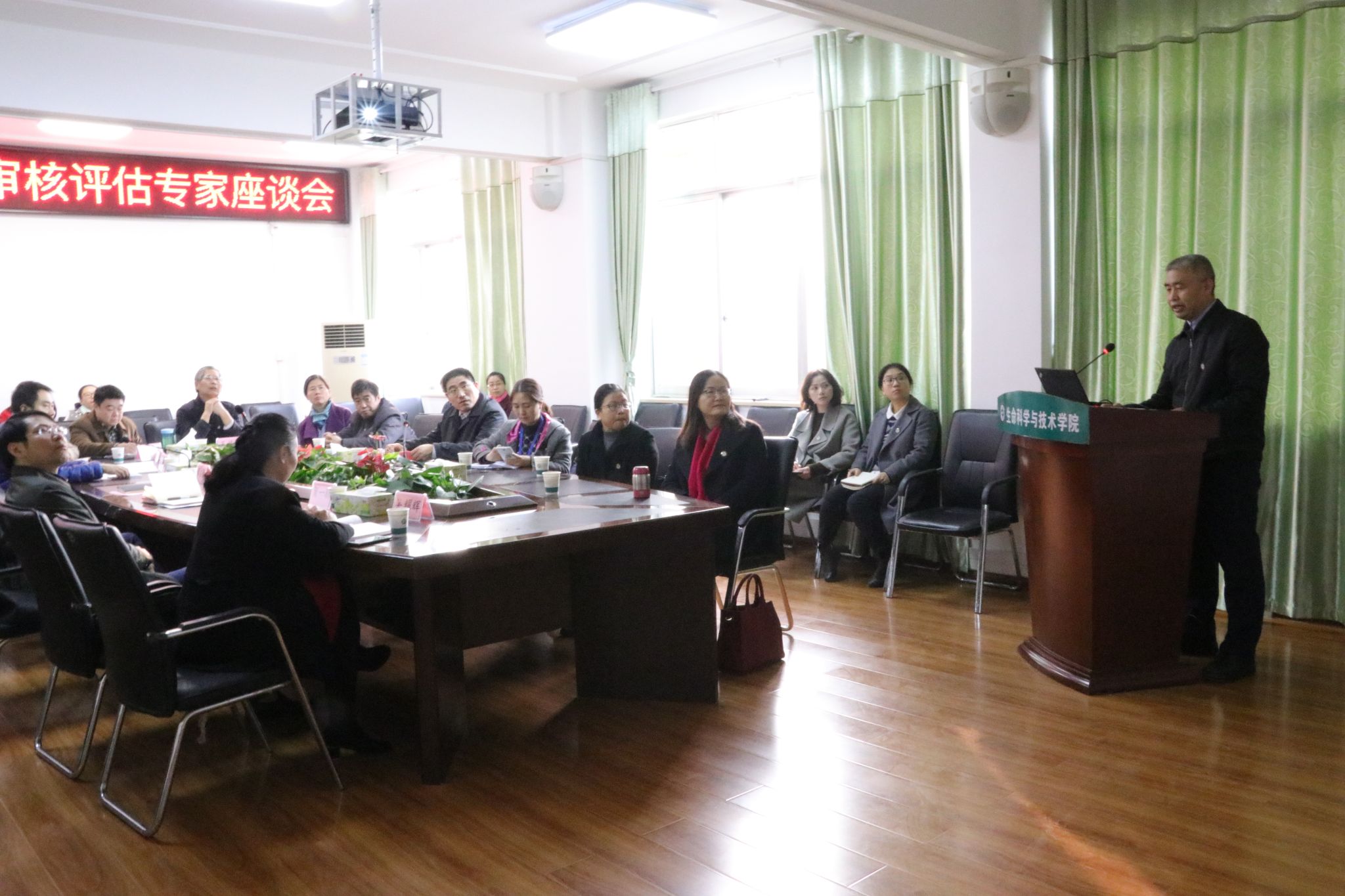学院院长闫文德从学院概况、办学定位与目标、办学特色、教学条件与资源、教学条件与资源、质量保障与管理、存在问题与改进措施七个方面进行了汇报。