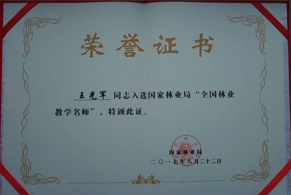 王光军教授荣获第一批“全国林业教学名师”荣誉称号