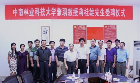 蒋桂雄对受聘为我校兼职教授感到十分荣幸并对广大师生表示感谢,表达了作为一名中南林的毕业生对母校取得的成就感到由衷的自豪。受聘为母校兼职教授后,一定尽职尽责完成使命,同时,广西是一个林业大省,林业经济的发展也离不开母校的支持,希望母校在产学研、人才培养、林业生态建设等方面开展更加深入、更加广泛的合作,实现“双赢”的局面。